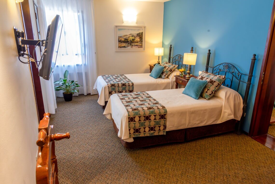 Ubicada en el 9 piso del hotel, la Habitación Cuádruple Superior está especialmente diseñada para familias de hasta 4 personas, brindando el espacio y la comodidad necesarios para una estancia agradable. Con una decoración funcional, ofrece dos ambientes con camas amplias para garantizar el descanso y bienestar de todos los miembros de la familia.
