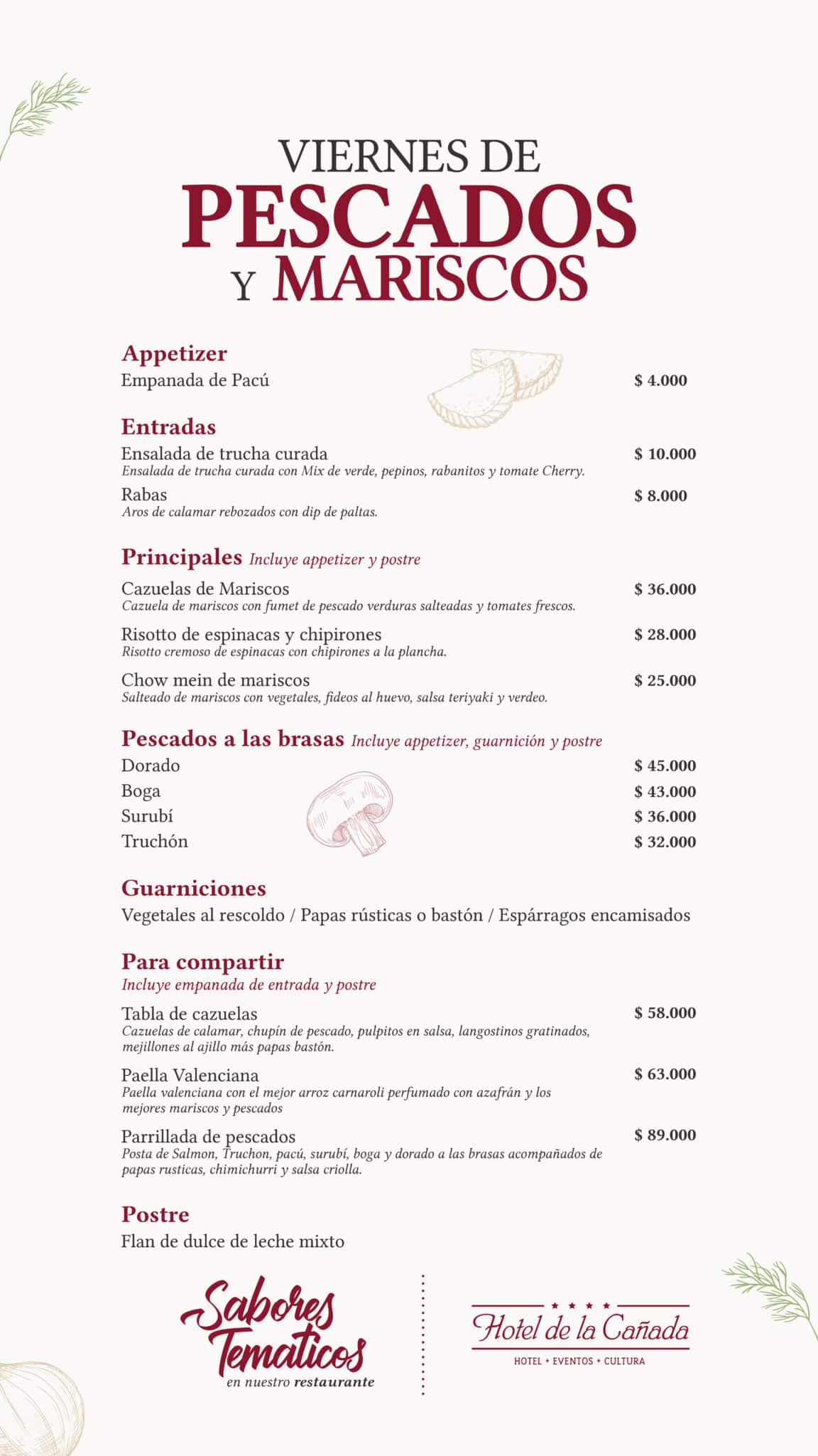 Nuestro Bar-Restaurante cuenta con servicios de menú sugerencias al mediodía y con promociones temáticas tales como: Miércoles de Pastas y Viernes de Pescados y Mariscos.